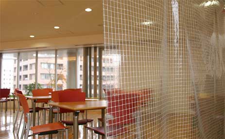 テイジンテントのメッシュ生地は、遮蔽加工された「美妙」、意匠性の高い「美影」、屋外での使用に適した「クッキー」があります。