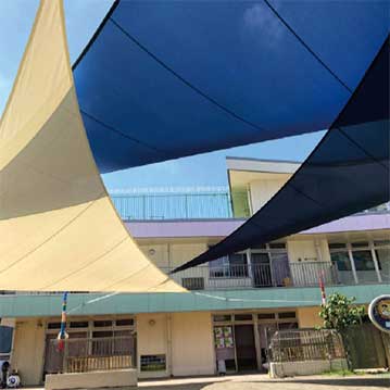 メッシュ生地は、強い日差しを遮りつつ、風を取り込むことができるため日よけに最適です。