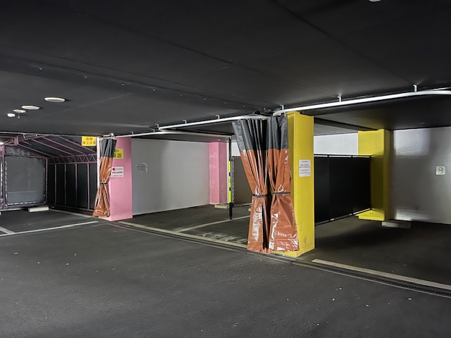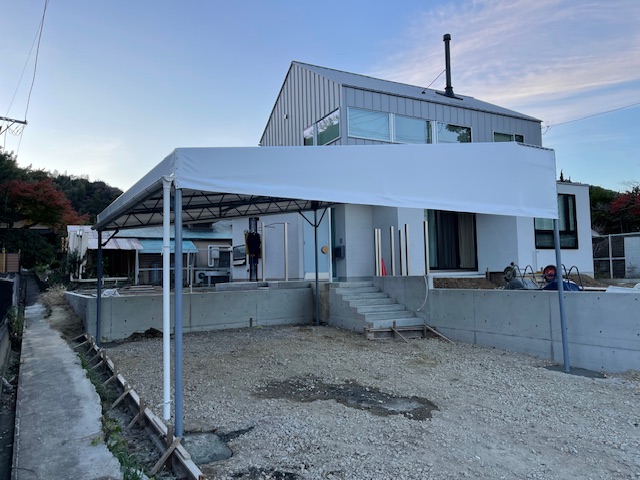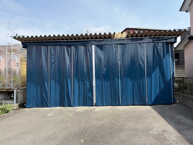 駐車場テントの施工事例です。ご希望に応じた形のテントを製造・施工いたします。お気軽にご相談ください。