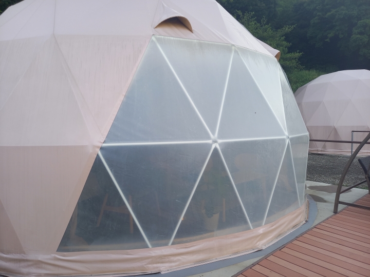 今流行りのグランピングテントのフイルム窓の経年劣化による(塩ビ製品は可塑剤の影響がでます)